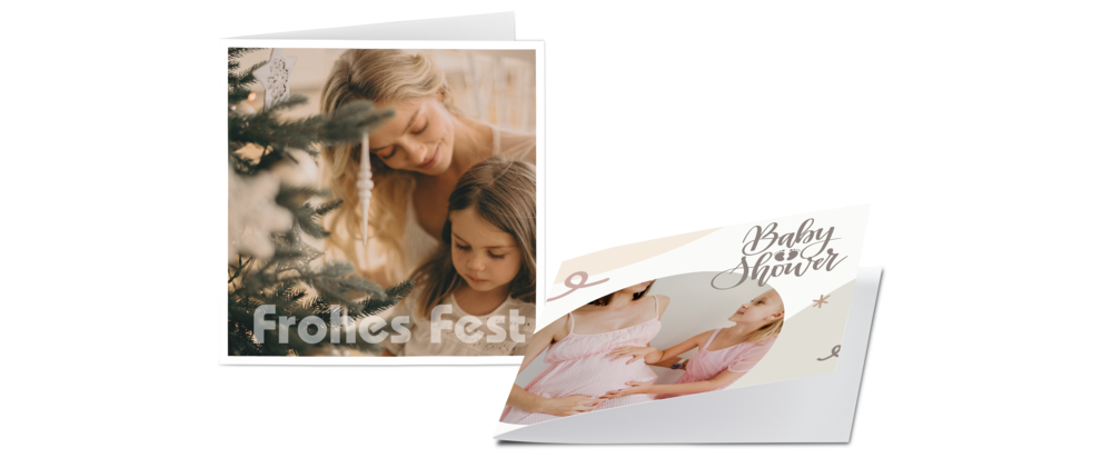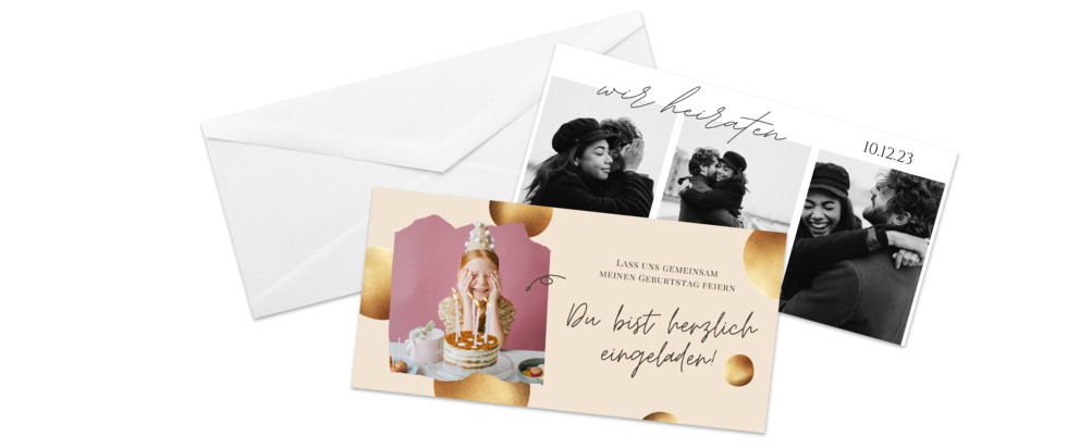 Jahr für Jahr gibt es viele Anlässe, Feierlichkeiten und Momente, die Freunde wie Familie gemeinsam teilen. Um für Geburtstage, die Goldene Hochzeit oder ein Firmenjubiläum eine innovative und einzigartige Karte zu gestalten, finden Sie mit den Fotogrußkarten in unserem Online-Fotoservice unzählige Vorlagen und Designtipps. Sprechen Sie Gäste oder Jubilare in Ihren Grußkarten mit Foto und einer persönlicher Widmung an. Die hohe Papierqualität sorgt auch hier für brillante Ergebnisse und langanhaltende, strahlende Farben. Fotogrußkarten bieten damit für jede Situation das passende Medium. Kombiniert mit persönlichen Glückwünschen und einem individuellen Text bleiben Ihre Grußkarten lange im Gedächtnis.