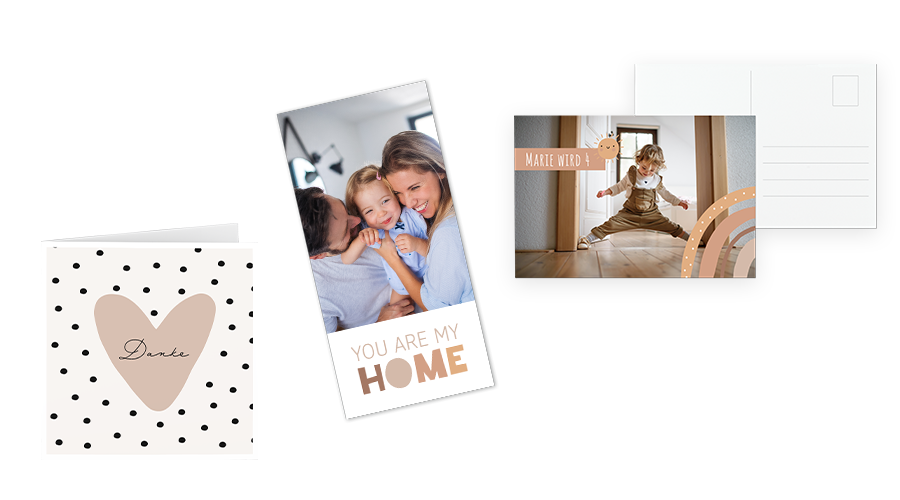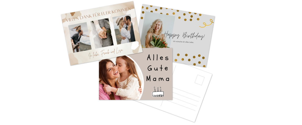 In Zeiten von E-Mail und Facebook geht das Postkarten schreiben immer mehr verloren. Digitale Nachrichten sind – in kürzester Zeit verschickt – aber nichts Besonderes und damit weniger Wert, als gedruckte Grüße. Ihre Liebsten freuen sich sicher, wenn Sie einen Brief oder eine Postkarte aus dem Briefkasten holen dürfen. Bei uns können Sie Ihre ganz individuellen Postkarten selbst gestalten. Das Lieblingsfoto oder Bilder aus dem letzten Urlaub? In hochwertigem Digitaldruck auf 270g/m²-Papier gedruckte Fotokarten zaubern dem Empfänger mit Sicherheit ein Lächeln ins Gesicht.