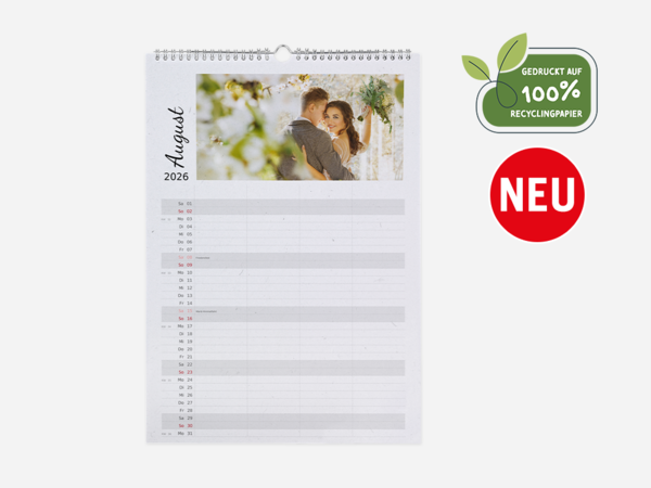 Die Natur Pur Kalender® erweitern unser umweltbewusstes Angebot perfekt. Bei ihnen besteht das Papier ebenfalls zu 100 % aus Blauer Engel zertifiziertem Recyclingpapier, sodass auch hier hohe Umweltstandards erfüllt werden.
